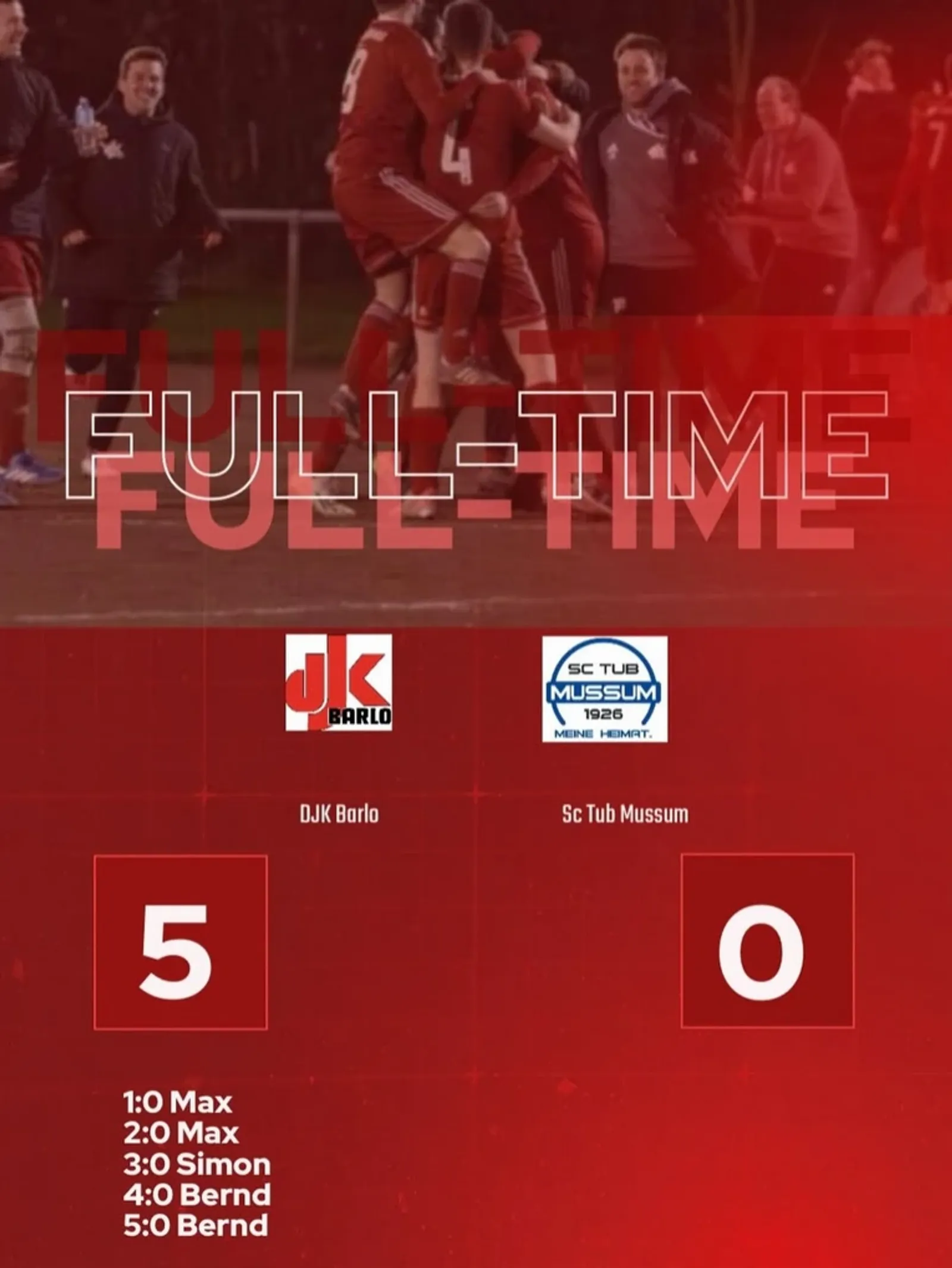 13. Spieltag – 5:0-Sieg im letzten Spiel auf unserer Asche! 😍🥲 Wir verabschieden uns mit einem klaren Heimsieg und bleiben weiterhin ungeschlagen! Der Start war direkt ein Feuerwerk: In der 2. Minute trifft Max zur frühen Führung. Danach verpassen wir es, direkt nachzulegen – so ging es „nur“ mit 1:0 in die Pause. Nach Wiederanpfiff war Max erneut zur Stelle und machte in der 50. Minute das 2:0 – sein 13. Saisontor! In der 65. Minute erhöhte Simon auf 3:0 und kurz vor Schluss setzte Bernd mit einem Doppelpack das 4:0 und 5:0 drauf! 🥰 Nach 13 Spieltagen stehen wir bei 12 Siegen und einem Unentschieden – weiterhin ungeschlagen! 🥳 Nächsten Freitag geht’s im letzten Hinrundenspiel gegen Stenern II. Wir sind bereit !