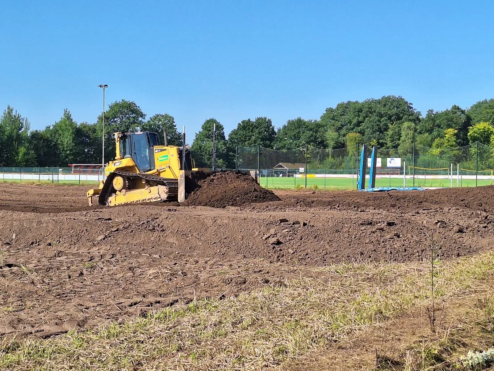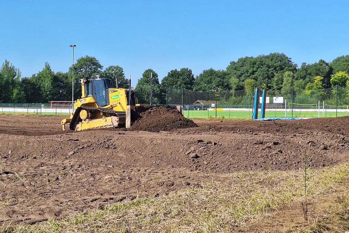 Endlich hat das Warten ein Ende! Der neue Kunstrasenplatz wurde wie geplant am 11.08.2025 in Angriff genommen. Nun heißt es warten und auf gutes Wetter für die Bauphase hoffen, damit dieser auch wie geplant fertiggestellt werden kann.